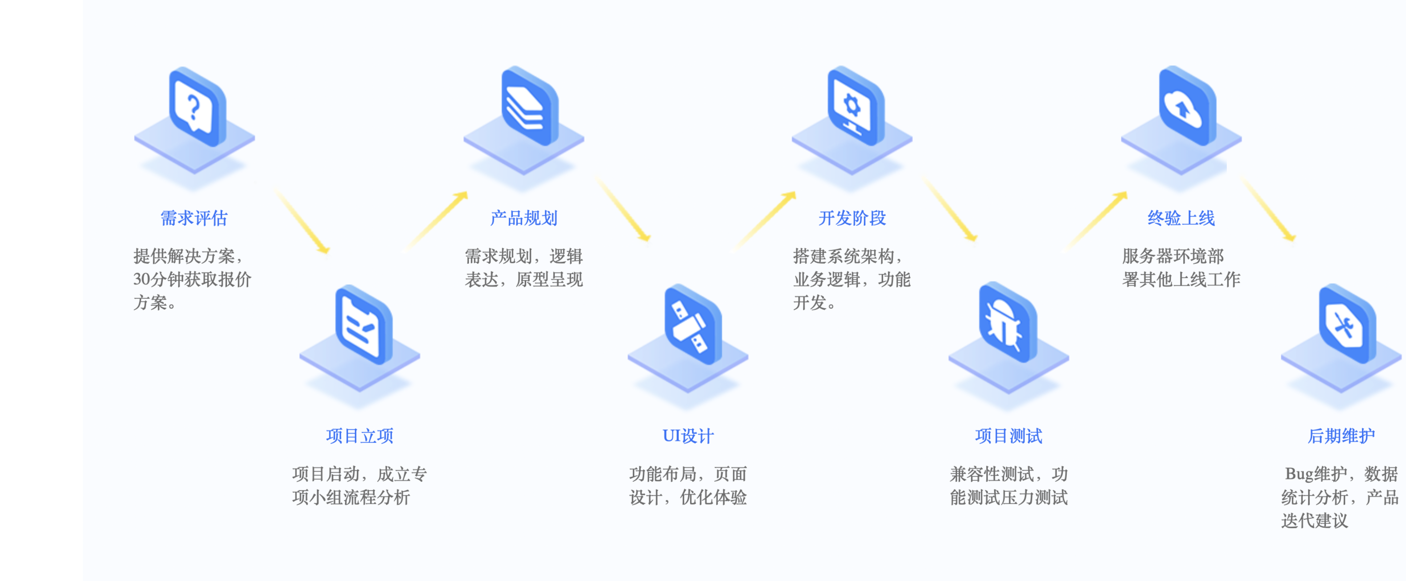 經(jīng)過大量APP開發(fā)項目的經(jīng)驗積累,以 及自身對互聯(lián)網(wǎng)領域商業(yè)模式的了解, 可以為每一位客戶提供專業(yè)性的建議及 產(chǎn)品方案,合理周全的考慮到客戶的需 求和盈利模式,為您的項目成功保駕護 航。